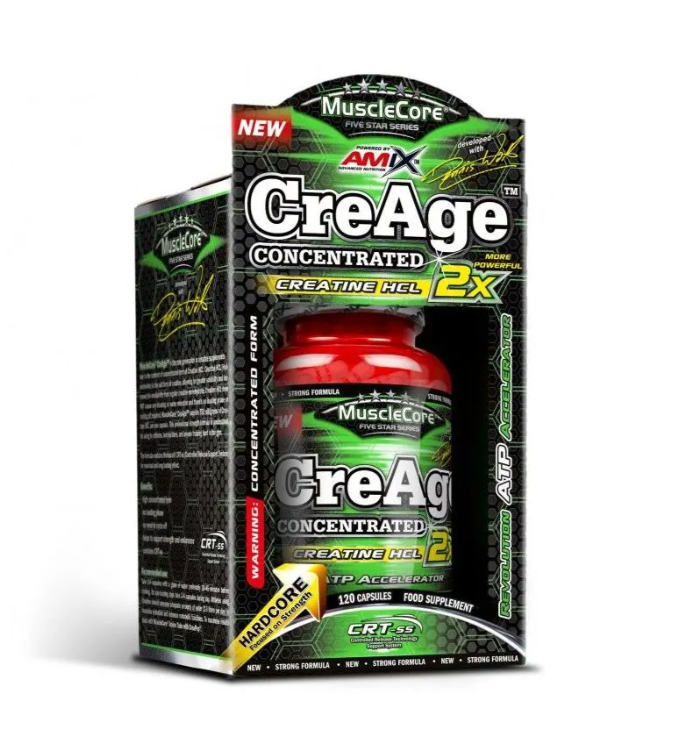 MuscleCore® CreAge ™ es la nueva generación en suplementos de creatina debido al contenido de forma concentrada de Creatina HCl.