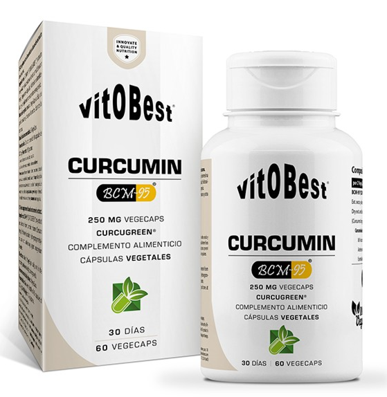 Curcumin, de Vitobest®, máxima absorción y biodisponibilidad. Está compuesto 100 % por el extracto totalmente natural de cúrcuma BCM-95® (CURCUGREEN®), que es el extracto de cúrcuma con más biodisponibilidad y efectividad que existe hoy en día.