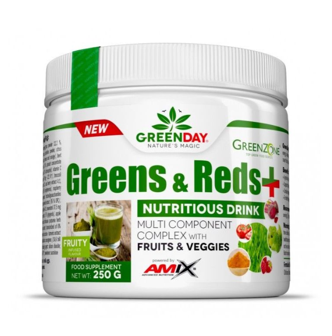 Greens & Reds + de Amix GreenDay es una solución perfecta en formato polvo instantáneo para preparar un batido verde lleno de energía, vitaminas, minerales así como también antioxidantes.