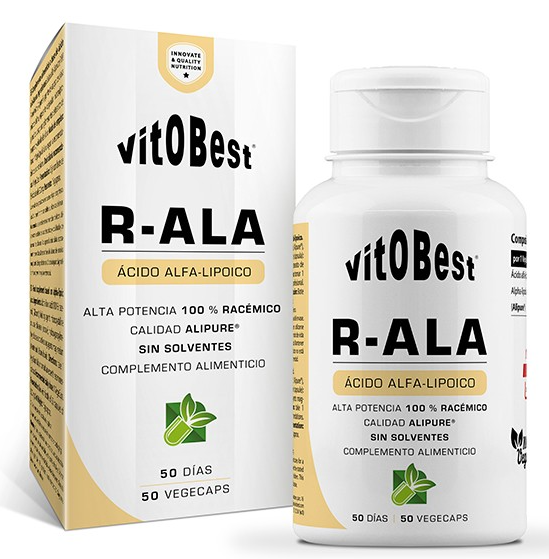 R-ALA, de Vitobest®, contiene en su formulación ácido α-lipoico 100 % racémico (la única configuración que nuestro cuerpo puede sintetizar y la más eficaz), lo que duplica su efectividad comparada con la que ofrecen la mayoría de los productos que se comercializan con este ingrediente activo y que contienen solamente una mezcla racémica al 50 %.
