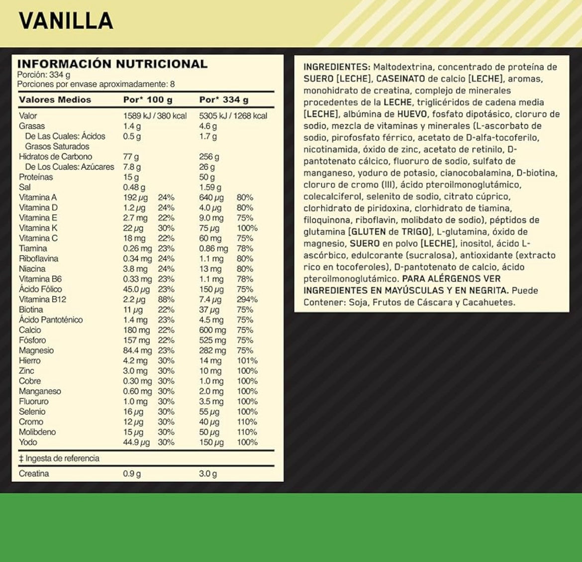 Serious Mass™ es la ultima palabra en fórmulas para aumento de peso, con 1250 calorías por porción y 50 gramos de proteína para apoyar la reparación y crecimiento muscular. Este polvo es ideal post entrenamiento y también para ser utilizado entre las comidas y así alcanzar sus metas. Serious Mass proporciona las herramientas que necesita para ganar kilos y cuando se combina con esfuerzo serio en la sala de pesas, desarrolla su físico tanto como sea posible.